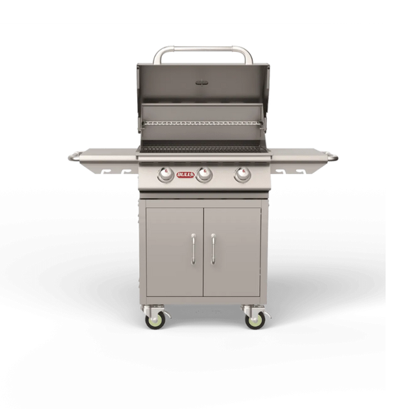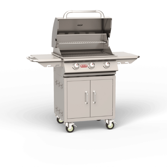 Steer Premium Complete Cart – NG (Model #'s 69009 and 69500) is designed for professional outdoor cooking with durability and convenience. Built from 304 stainless steel, this natural gas cart features three welded stainless steel burners producing 45,000 BTUs total, a warming rack, and a grease tray for easy cleanup. With 429 sq. in. of cooking surface and heavy-duty casters for mobility, it is ideal for high-volume grilling and built-in outdoor kitchens.